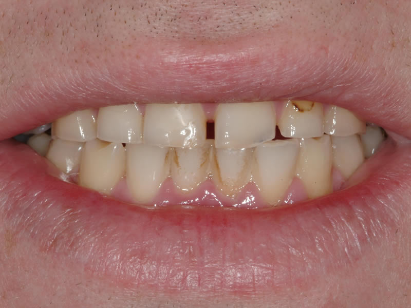 In this case a combination of crowns, onlays and veneers were used to restore the badly worn dentition.
